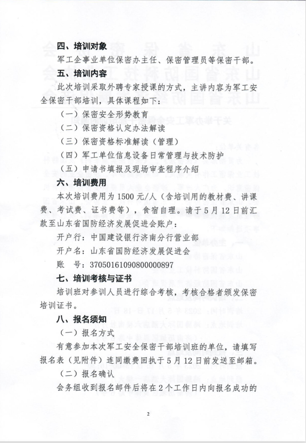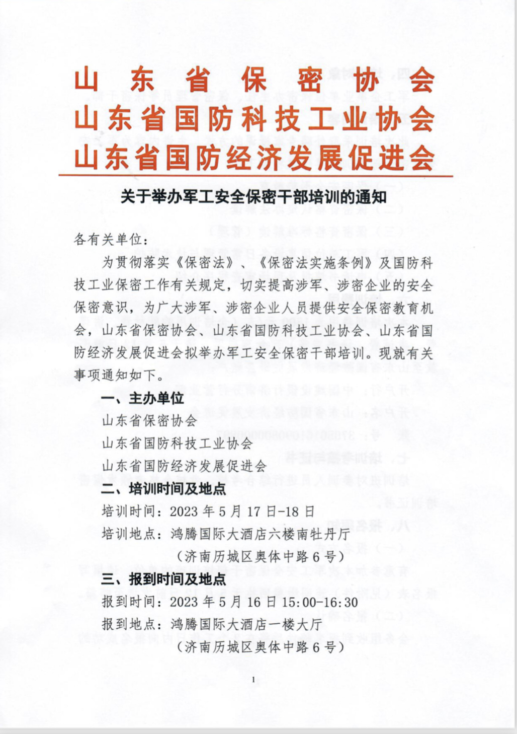 山東省國防科技工業(yè)協(xié)會 -- 關(guān)于舉辦軍工安全保密干部培訓(xùn)的通知